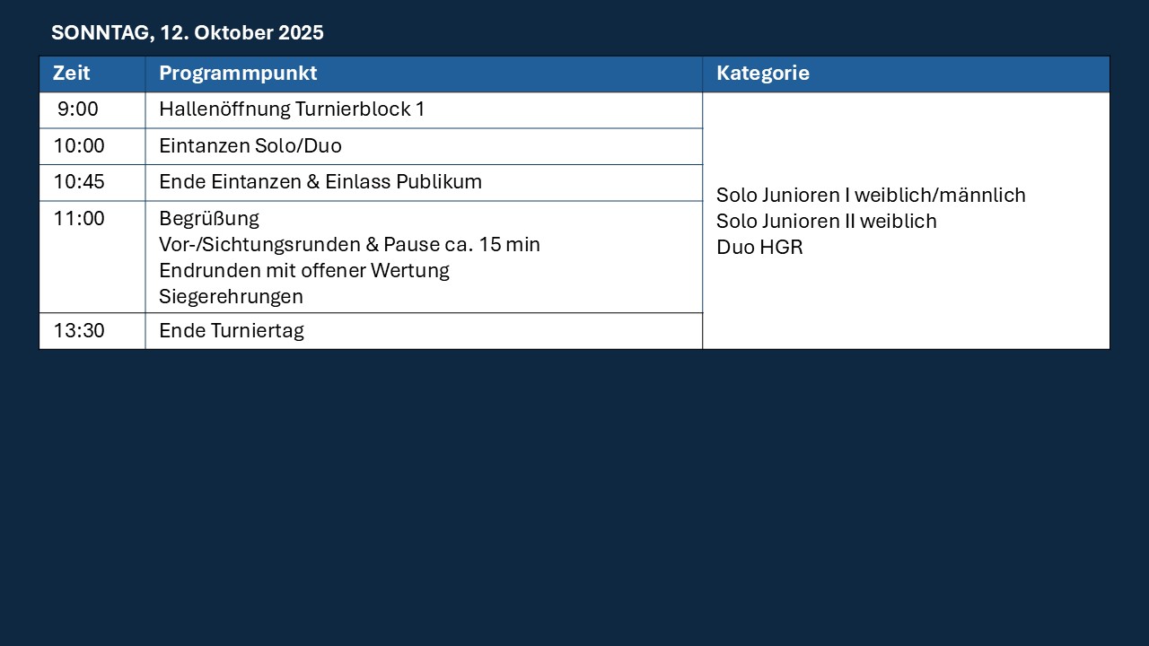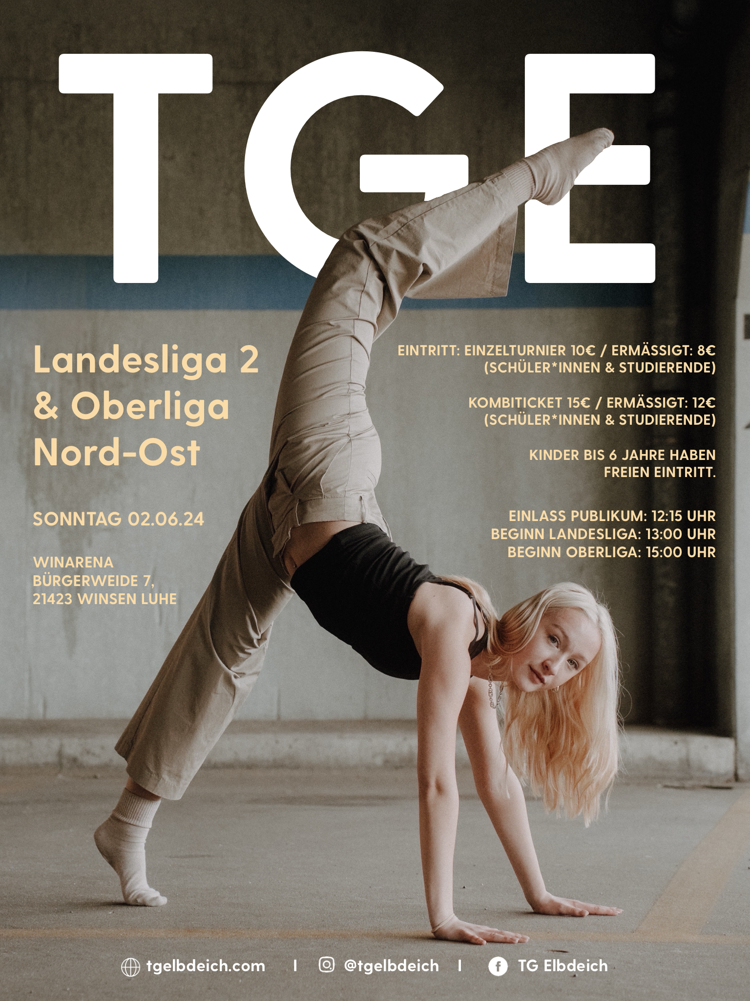 Am 11. und 12. Oktober darf die TG Elbdeich die Regionalmeisterschaft Nord-Ost 2025 für Solo, Duo und Smallgroup in Winsen/Luhe ausrichten. Wir freuen uns auf viele Zuschauer!