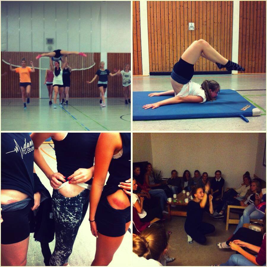 Am Sonntag wurde ein letztes Mal richtig rangeklotzt bevor es nach dem Mittagessen schon wieder nach Hause ging. Der eine oder andere blaue Fleck und kleine Schürfwunden wurden als Erinnerungen vom Trainingslager mitgenommen und beweisen, wie hart die einzelnen Tänzerinnen an sich arbeiten .. No pain no gain! Das Trainingslager 2014 war noch besser als wir es uns erträumt hatten und wir freuen uns nun noch mehr auf die Saison 2015 und machen mit dem Training bei uns in Fliegenberg genauso motiviert und zielstrebig weiter.